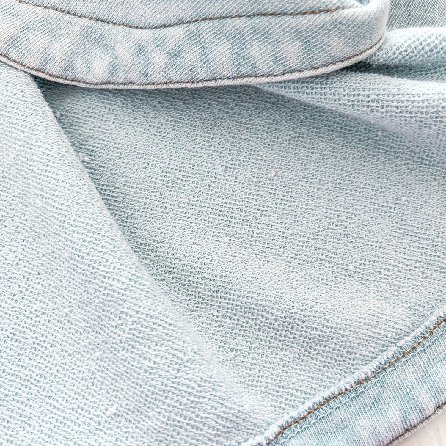 - Soft fleece sweatshirt fabric with a denim-inspired look