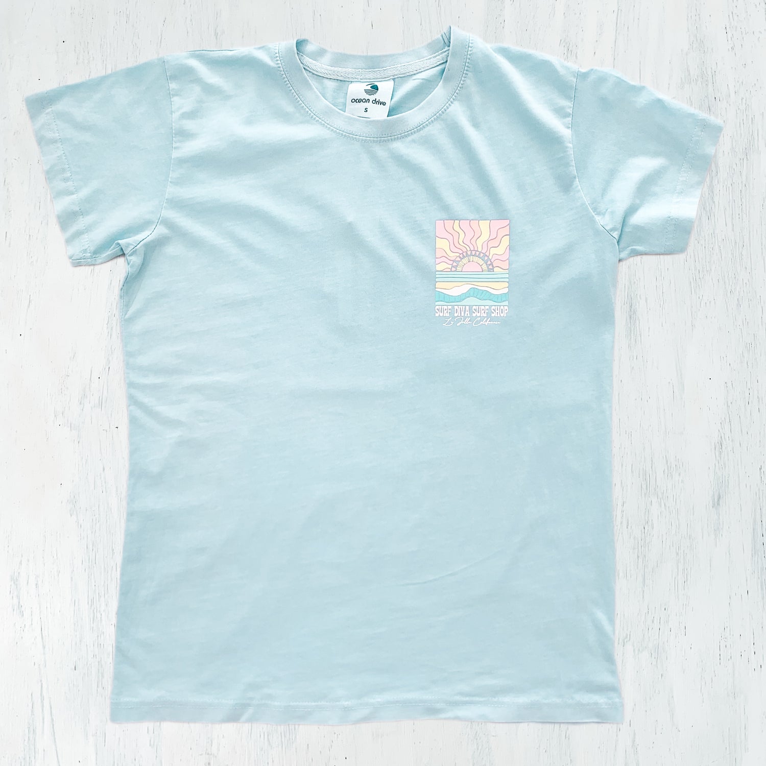 Make waves with the Surf Diva Coastal Blue Graphic Tee, designed for style, comfort, and everyday adventures. Made from 100% soft, breathable cotton, this t-shirt keeps you cool and comfortable from surf sessions to casual outings. Featuring a bold front chest print and an eye-catching back graphic, it delivers coastal vibes from every angle. The relaxed fit and durable fabric make it perfect for layering or wearing solo. Pair with shorts, joggers, or jeans for a complete beach-ready look. Express your love for the surf lifestyle while staying effortlessly chic.