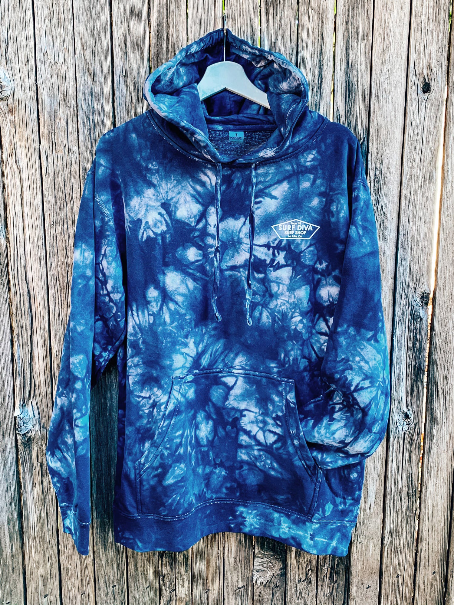 HOODIE SWEATSHIRT with SURF DIVA SURF SHOP (blue tie-dye)